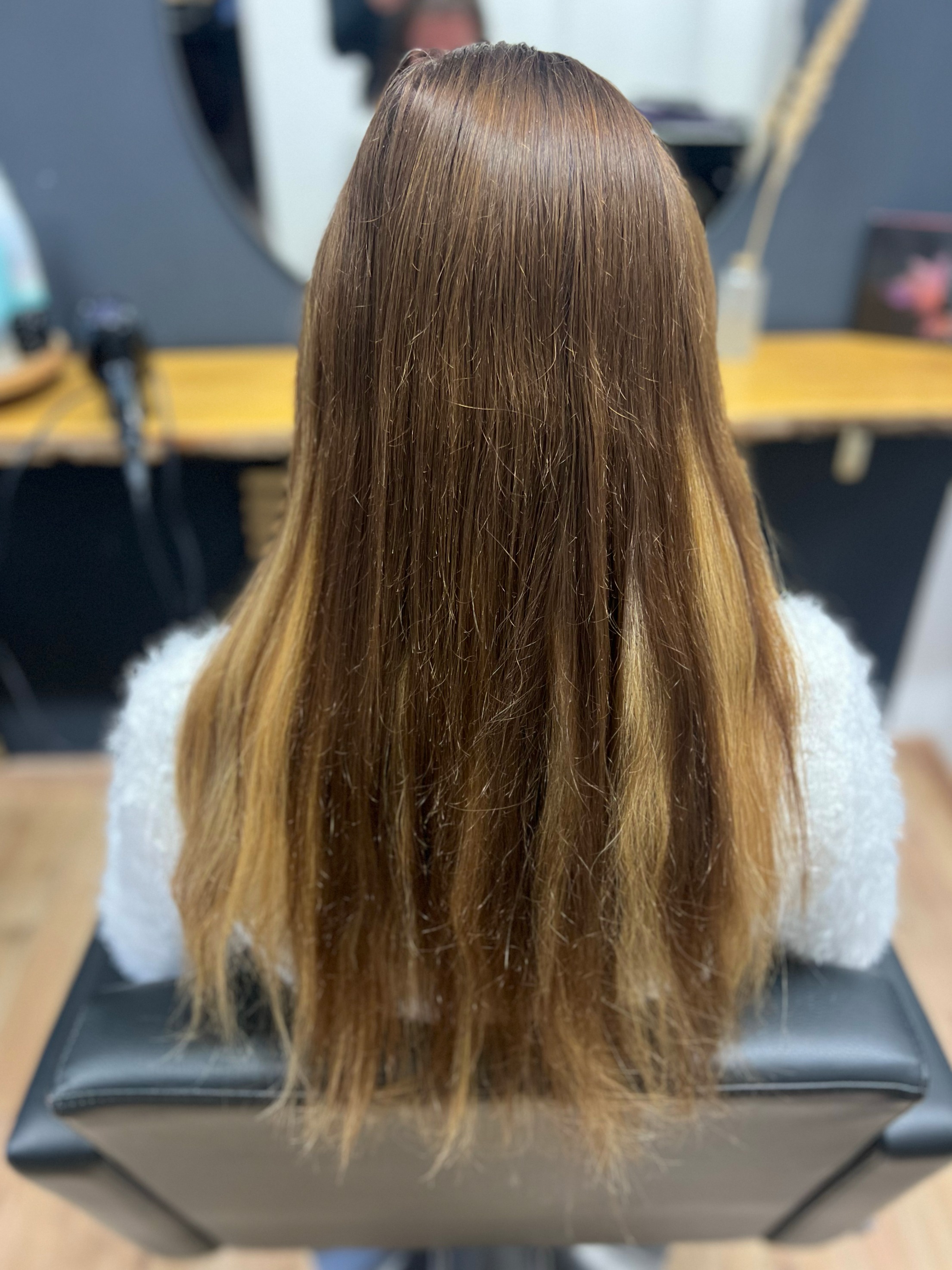 Wenn du dir mehr Volumen oder Länge wünschst, unterstützen wir dich mit professioneller Haarverlängerung. Dafür verwenden wir hochwertige Extensions, die sich harmonisch ins eigene Haar einfügen. Das Ergebnis wirkt natürlich, fühlt sich gut an und lässt sich wie dein eigenes Haar stylen.